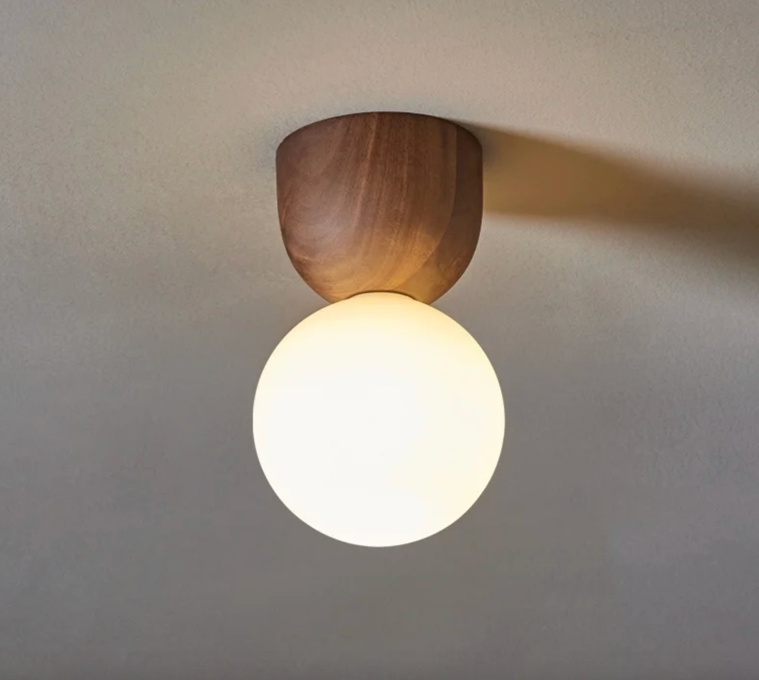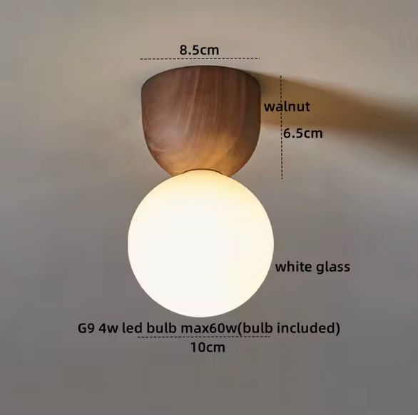 opalino y base madera nogal. Brillo difuso.
