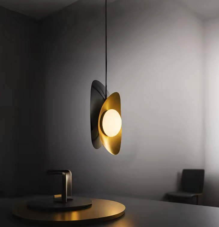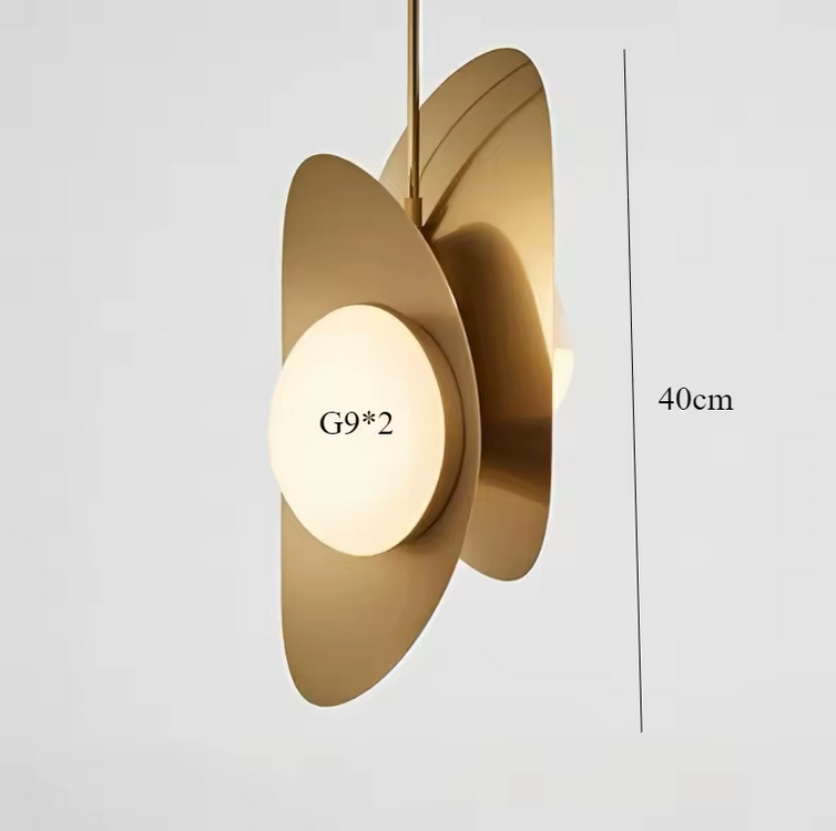 Lámpara de suspensión fabricada en aluminio, pantalla de vidrio opalino.
